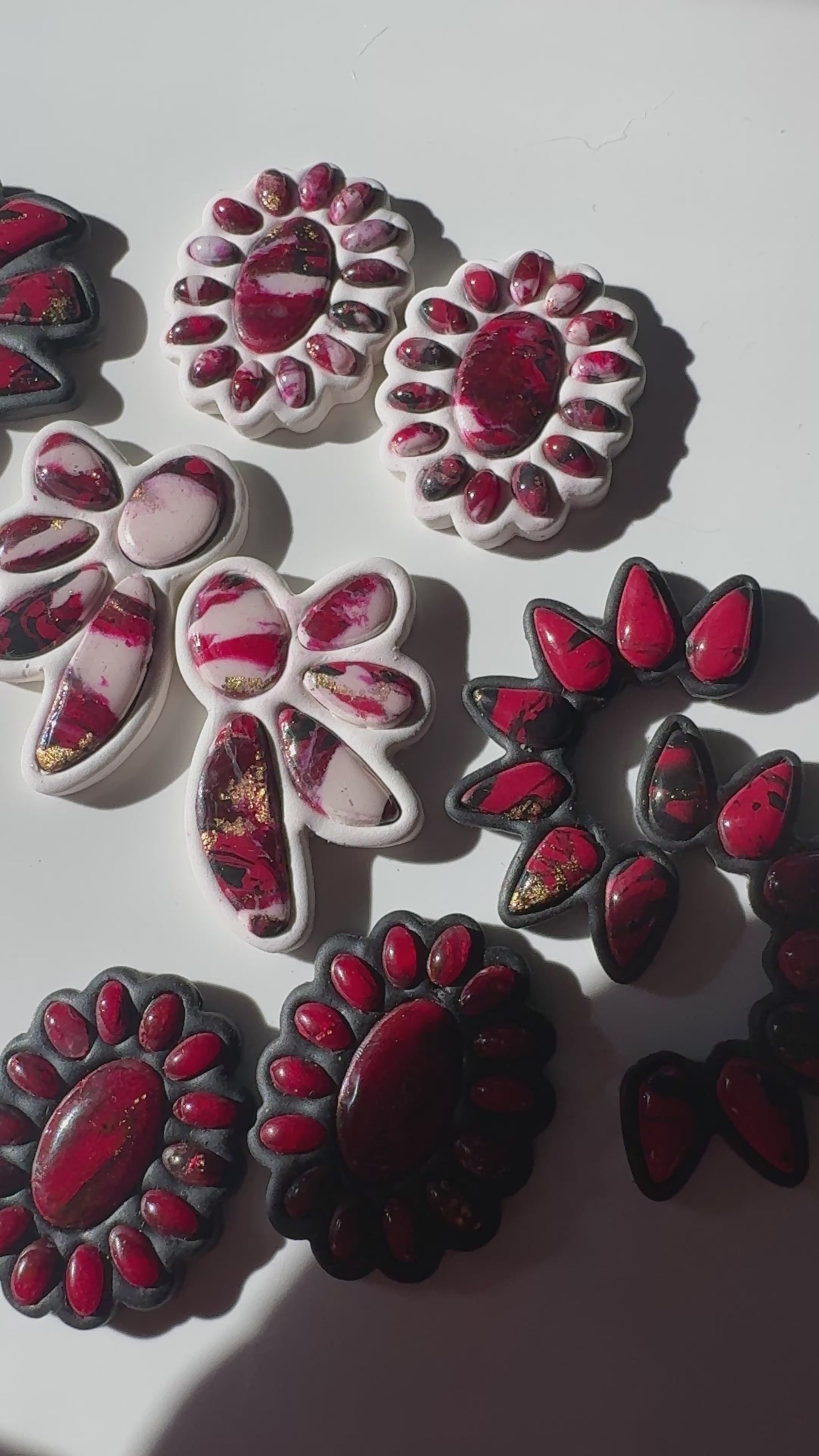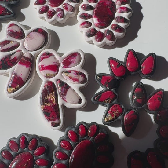 Earrings are hand made from polymer clay on a farm in Nebraska,