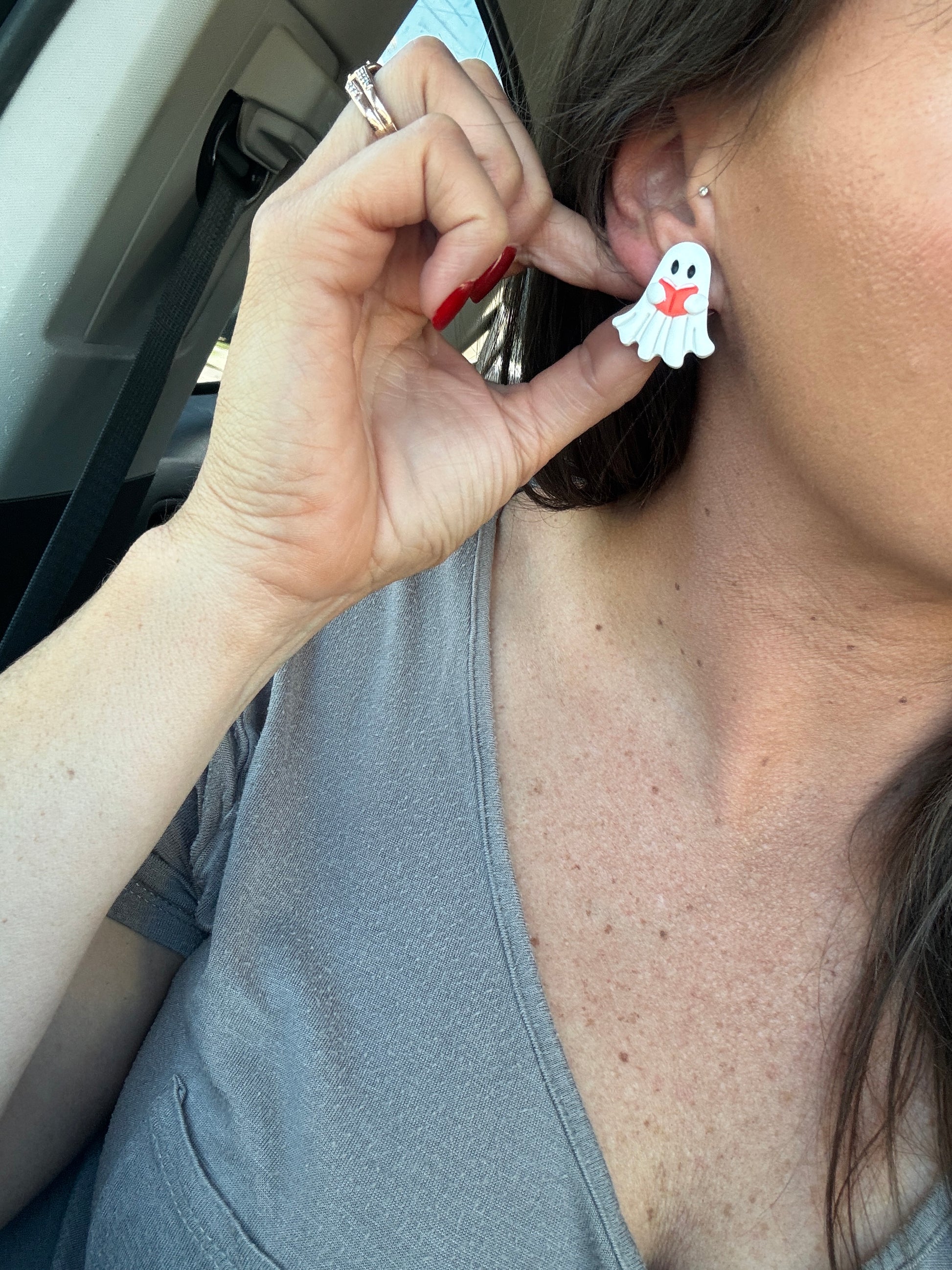 Earrings are hand made from polymer clay on a farm in Nebraska,