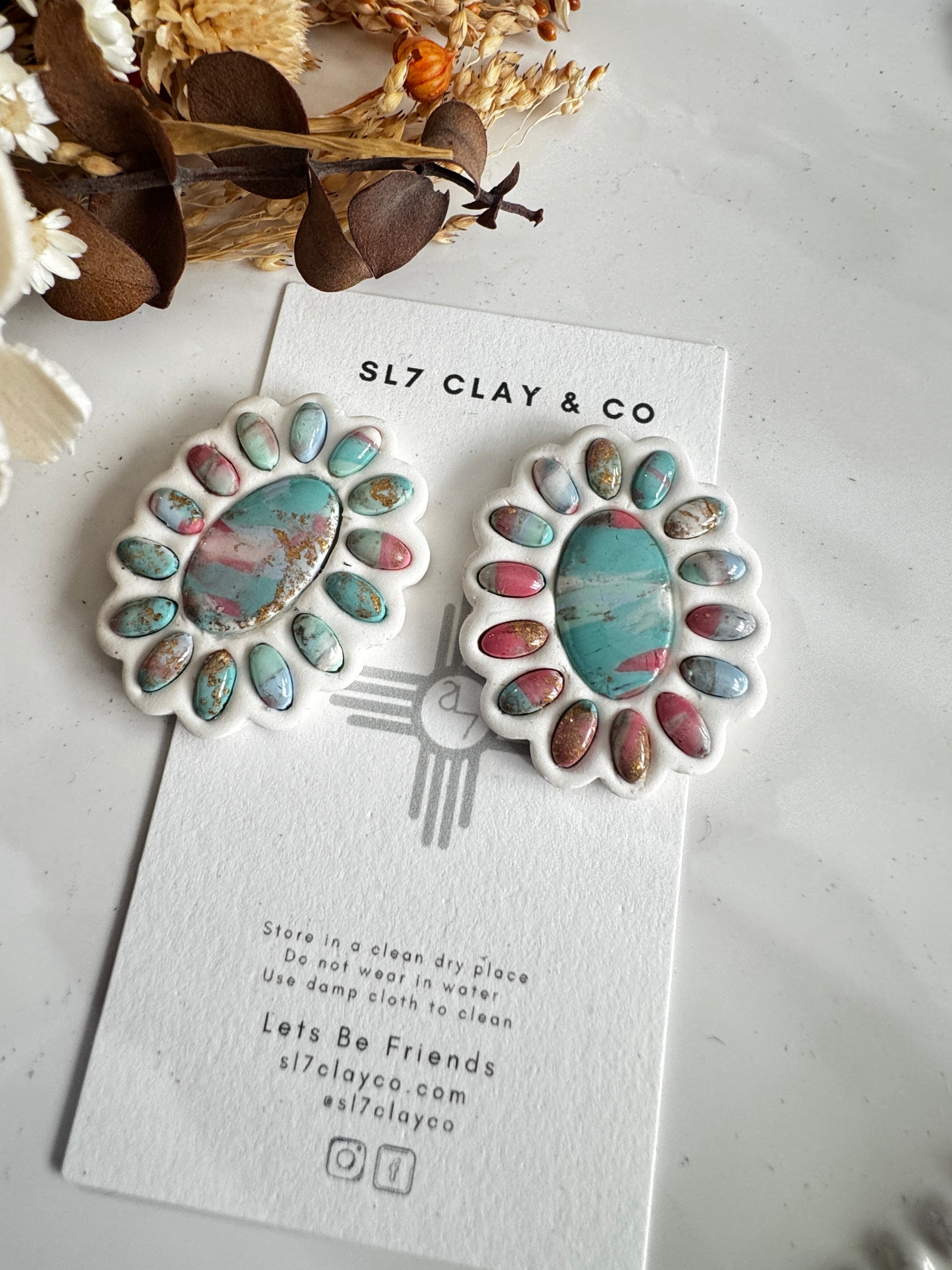Earrings are hand made from polymer clay on a farm in Nebraska,