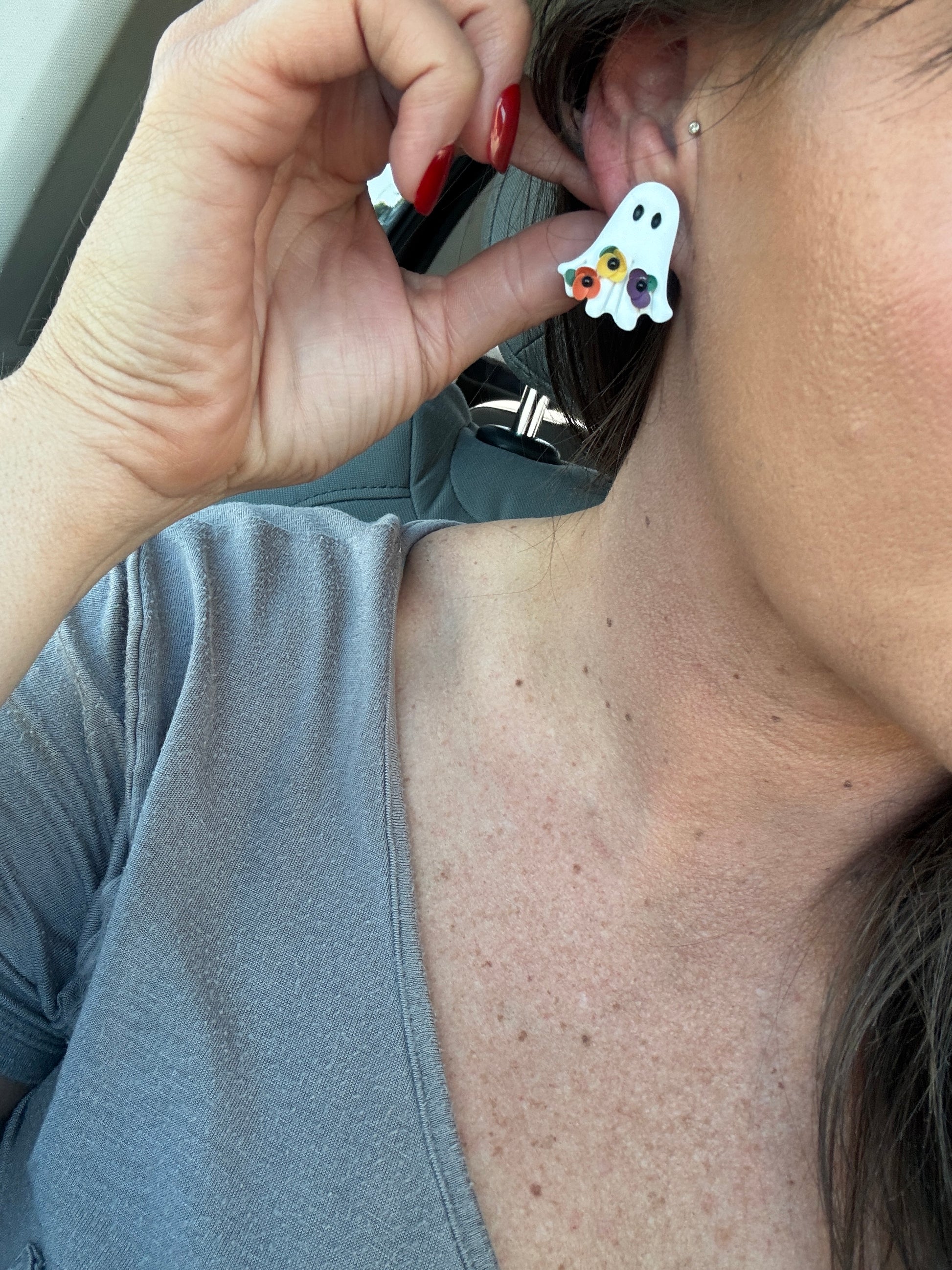 Earrings are hand made from polymer clay on a farm in Nebraska,